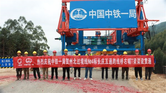西部決策網(wǎng)訊 3月22日,中鐵一局三公司賀州北過(guò)境線項(xiàng)目長(zhǎng)慶互通跨線橋右幅T梁架設(shè)順利貫通。