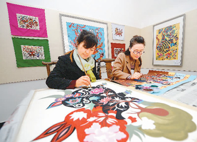 近年來(lái),陜西延安安塞區(qū)依托全國(guó)民間藝術(shù)之鄉(xiāng)的優(yōu)勢(shì),圍繞腰鼓、民歌、剪紙、繪畫(huà)、曲藝五張文化名片,推進(jìn)文化+農(nóng)業(yè)+旅游的融合發(fā)展戰(zhàn)略,助力鄉(xiāng)村旅游發(fā)展。圖為10月20日,安塞區(qū)高橋鎮(zhèn)魏塔民俗文化村的藝人在繪制農(nóng)民畫(huà)。 新華社記者劉瀟攝……